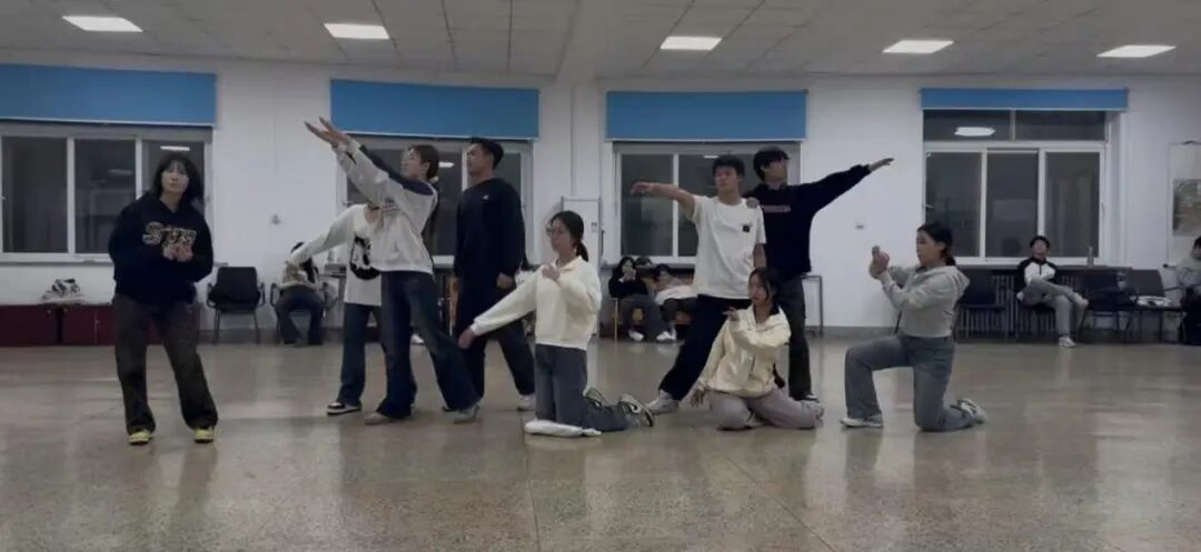 每一分钟的精彩绽放,背后是无数个夜晚的反复打磨。同学们常常搭乘跨校区班车赶来排练,在训练室里踩着音乐的节拍,一遍又一遍地调整动作、对齐队形。一个转身的角度、一次抬手的高度,都要经过反复校准。